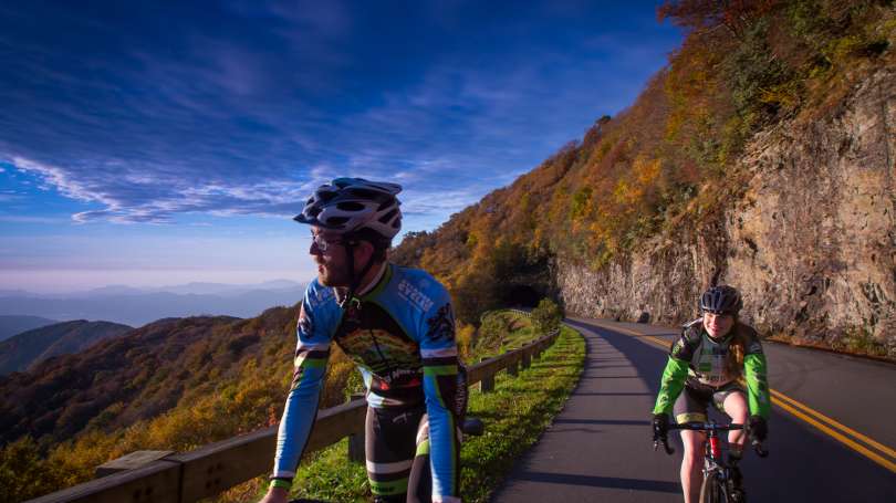 Although the Blue Ridge Parkway is known as “America’s Favorite Drive,” it’s also a favorite route among cyclists. The section of the Parkway that wraps around Asheville is fairly flat (outside of one strenuous climb of 3,000 feet), making it a great ride for both experts and beginners. To enjoy the Parkway safely on two wheels, there are specific rules that must be followed by cyclists, like riding in single file (as you will share the road with cars), at a reasonable speed and only on paved surfaces. From Asheville, the ride to the Mt. Pisgah Overlook at milepost 408.6 is well worth the 27 miles for the sweeping views of Pisgah National Forest.