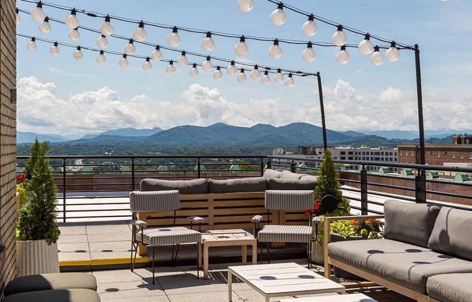 - Just a classic elevator ride away, The Flat Iron Rooftop is the ideal destination after a day spent exploring Asheville. The best of the city’s world-renowned breweries, a globally influenced wine list, and expertly crafted cocktails meet stunning views of the French Broad River Valley and the Blue Ridge Mountains, lending new perspective to your stay.