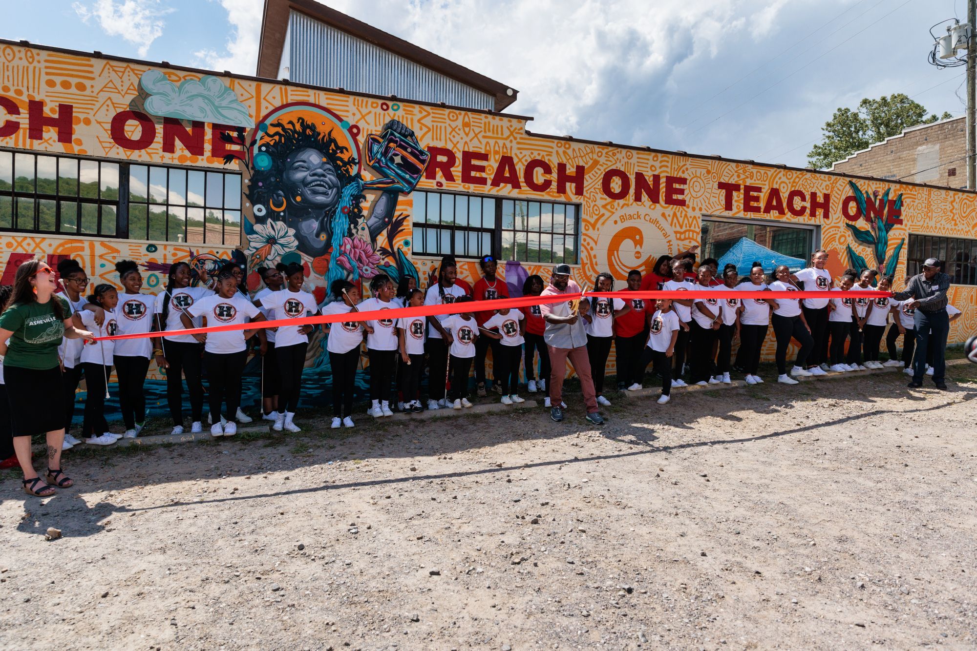 Rounding out National Travel & Tourism Week, community leaders, government officials, and community advocates gathered yesterday in South Slope to witness the unveiling of the first mural part of the Asheville Black Cultural Heritage Trail. This trail, which opened in December 2023, celebrates the dignity, humanity, and agency of Black people from all backgrounds who built resilient communities and fostered social change in Asheville. This week’s event continued that celebration with a focus on uplifting the future generations of Black Ashevillians.