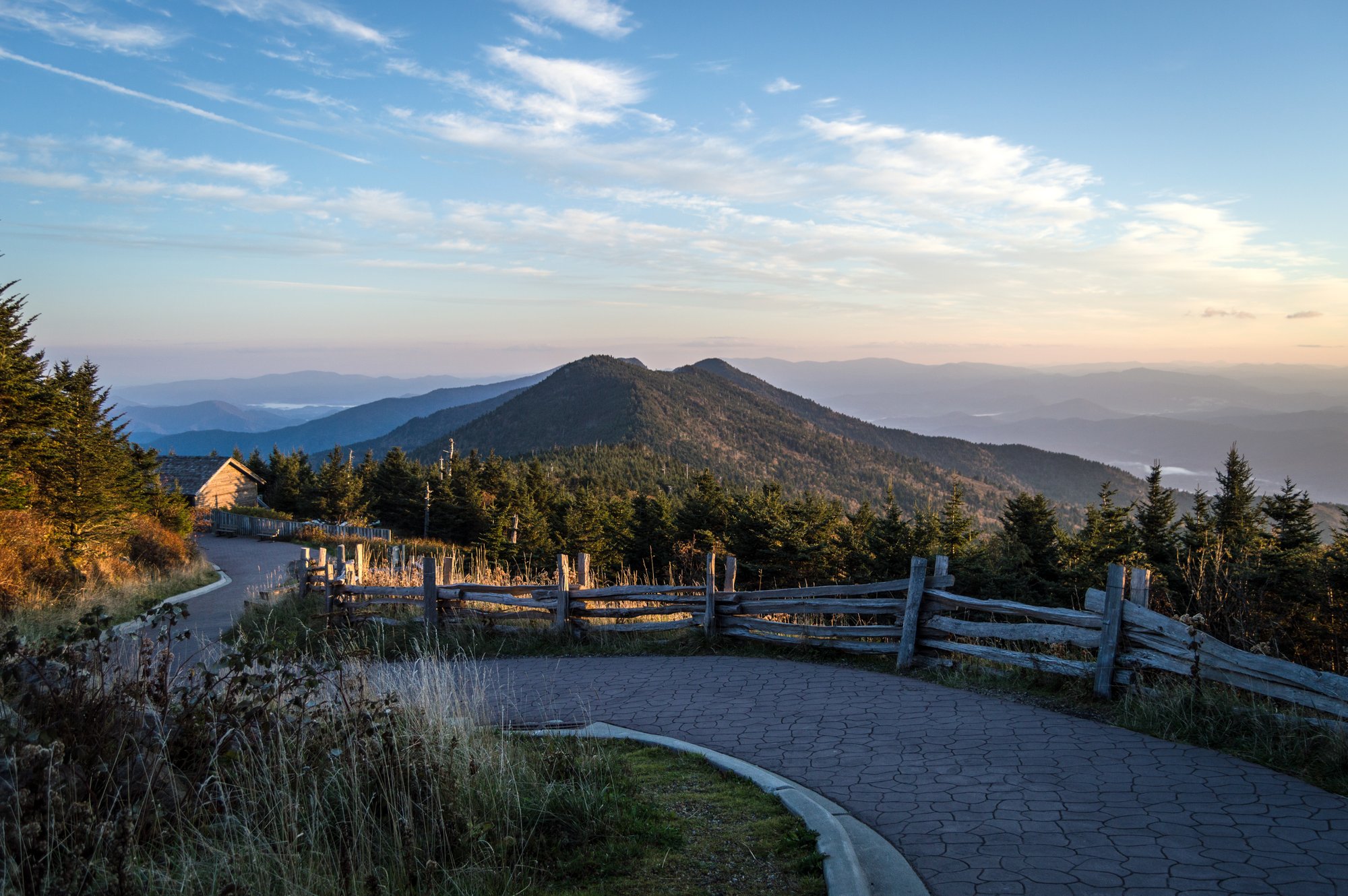 At more than 6,600 feet, Mount Mitchell's summit is often 15-20 degrees cooler than the temperature in downtown Asheville. Plan accordingly by dressing in layers. The summit area is often covered in clouds, keep an eye on weather forecasts and try to visit when the sky is clear in Asheville.